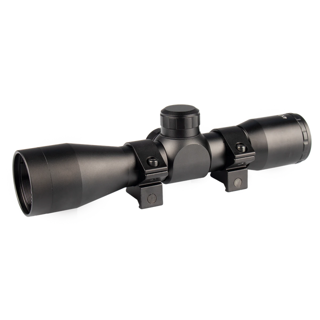 Designed to fit crossbows with a 20 mm Picatinny rail, the Man Kung 4x32 Crossbow Scope is a perfect match for models like the Man Kung MK-150A3B, MK-250A1B, MK-300AC, and more. If you prefer an illuminated reticle, check out the UTG 4x32 Crossbow Scope, compatible with 11mm dovetail rails as well.