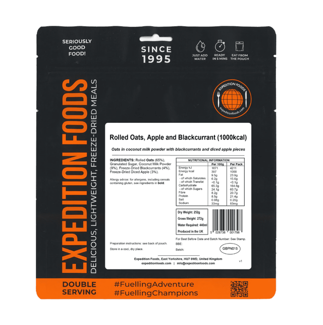 Expedition Foods Freeze Dried Meal Pouch - Rolled Oats Apple & Blackcurrant - Various Sizes