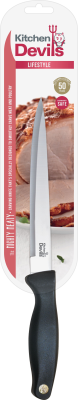 The Kitchen Devils KD Lifestyle Carving KnifeUncover the exceptional craftsmanship and practicality of the Kitchen Devils KD Lifestyle Carving Knife. This adaptable blade is a key component of an extraordinary selection of daily knives that will transform your cooking encounters.An essential for any culinary space, the Kitchen Devils KD Lifestyle Carving Knife is indispensable. Featuring an array of jagged, wavy, and sunken ground blades, each knife in this series provides unmatched worth.The well-designed handles guarantee comfort and cleanliness, seamlessly fused onto the blade to eliminate food residue. Revel in a steady and firm grasp with each usage, courtesy of the expertly fashioned handles. The blades are forged from premium stainless steel, ensuring enduring sharpness and resilience.Specifications:- Blade specifically fashioned for effortless carving of meat and fowl- Premium stainless steel composition- Ergonomic handle design for comfort and cleanliness- Diverse blade styles for flexible utilization- Exceptionally keen blades for meticulous slicing