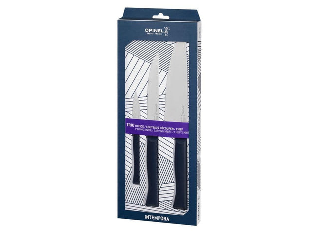 Indulge in the culinary artistry with the Opinel Intempora Trio Set, a coveted collection featuring the Paring Knife, Carving Knife, and Chef's Knife from the prestigious Intempora Range. Meticulously crafted to precision, these knives are a testament to exceptional quality, catering to the discerning needs of both seasoned chefs and passionate home cooks.
