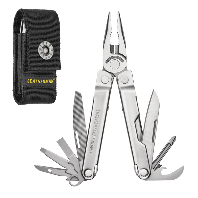 The lightweight Leatherman Bond Multi Tool provides 14 essential implements including pliers, a durable 420HC knife blade, and a set of standard screwdrivers. Weighing only 5.8 oz, this lightweight multi-tool features classic design, contoured handles & a selection of tools to help you tackle everyday tasks.