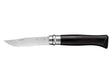 Step into sophistication and practicality with the Opinel N°08 Ebony Knife, a meticulously crafted tool that embodies precision and premium materials. With an ebony wood handle that radiates sophistication while providing a luxurious grip, this knife seamlessly marries style with utility.