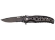 Its black handle provides a comfortable grip and features a pocket clip for convenient carry. The addition of a thumb stud allows for quick and easy one-handed deployment, making it a practical choice for on-the-go use.