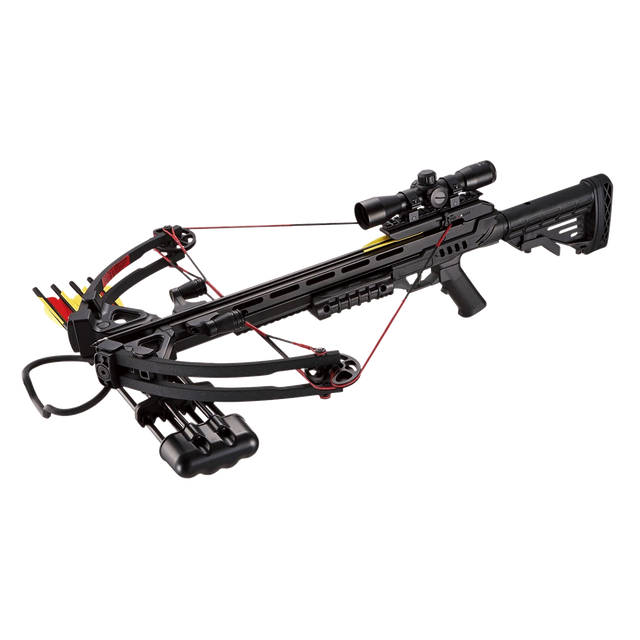 Crafted with an aluminium barrel and reinforced with fiberglass limbs, the MK-XB52BK showcases a thoughtful design with an adjustable rifle stock and front grip, ensuring both durability and comfort during use. The integrated Picatinny rails offer seamless compatibility with a range of accessories, including the provided 4x32 sight, sling, and quiver.