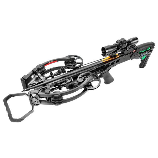 - Includes: 4x32 sight, sling, quiver, cocking string, 4 x 20-inch carbon bolts