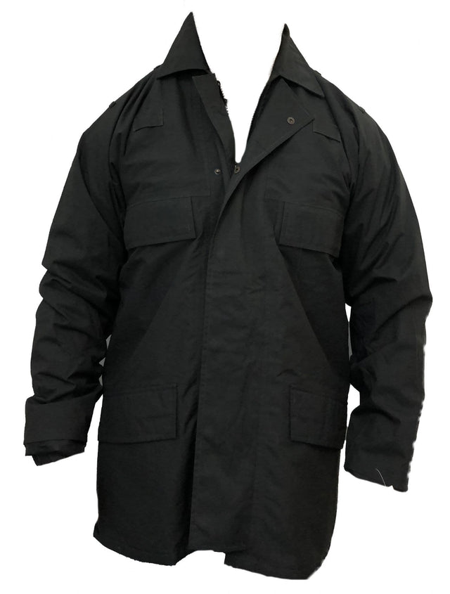 This British Military black waterproof jacket is a great all round warm waterproof for winter. It has a zipped front with snap wind proof flap which also contains a hidden zip pocket. 4 large front pockets, velcro elasticated windproof wrist cuffs. It has an ability to zip in a inside liner if you wanted to.