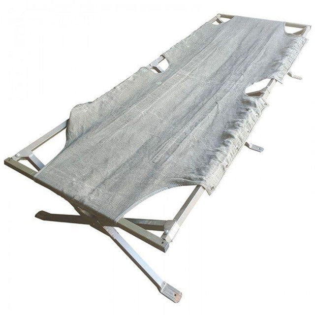 This Belgian Military Heavyweight Folding Camp Bed is perfect for a comfy night's sleep. It is a wider and longer than a conventional camp bed, with a length of 210cm and width of 75cm and is made of a cross legged sturdy steel frame, with flat feet so the bed can be pegged into place. The canvas top is attached to the steel frame with the paracord provided. The bed can be compacted down into a canvas bag and weighs approximately 18kg. These beds are used but in a great grade 1 condition.