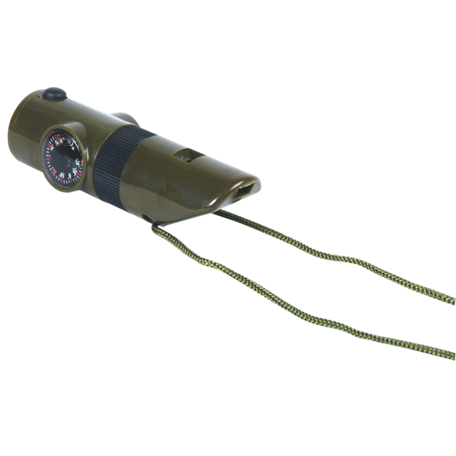 Introducing the Mil-Com 7-in-1 Survival Whistle, a must-have tool for any outdoor enthusiast or emergency preparedness kit. This multifunctional whistle is designed to provide you with essential tools for survival situations, all conveniently packed into one compact device.