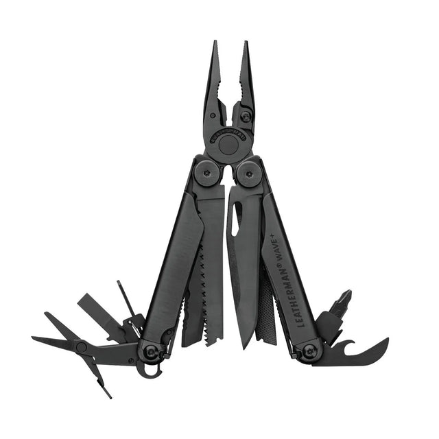 The Leatherman Wave+ Multi Tool in Black takes the best selling multi tool worldwide & dresses it up in this stylish dark finish. Most of the tools are on the outside meaning you can use them without opening up the full tool and all tools can be opened and operated with one hand for those tricky jobs. All 18 tools lock into place giving you a super strong, efficient work horse.