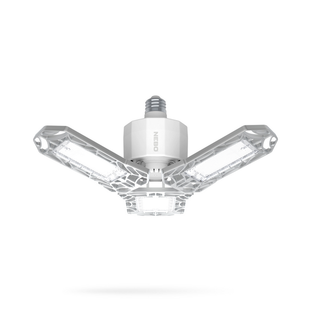Installation couldn’t be simpler – just screw the Nebo Garage Light into any standard household light socket and switch it on. With 90° adjustable LED panels, you can direct light exactly where you need it, making it perfect for DIY projects, mechanics, storage areas and more. Using only 60W of energy, it provides up to 600% more light than a standard 60W bulb, offering powerful performance with energy efficiency.