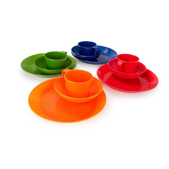 • Includes: 4 x 6" Bowls, 4 x 9.5" Plates, 4 x 12 fl. oz. Cups, Mesh Bag
