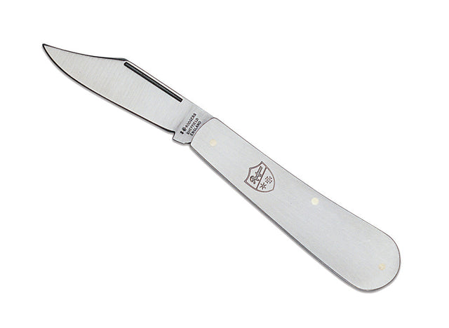 Sometimes referred to as a Skinner or Bunny Knife, The Joseph Rodgers Pocket Knife is a meticulously crafted tool that showcases exceptional quality and craftsmanship. This traditional pocket knife features solid nickel silver bolsters, brass linings, and brass rivets, all assembled by hand with meticulous care. The blade is a versatile clip point design, perfect for a wide range of cutting tasks, and is expertly crafted from high carbon stainless steel with a satin finish. Each knife proudly displays the iconic Rodgers’ Star & Cross trademark.