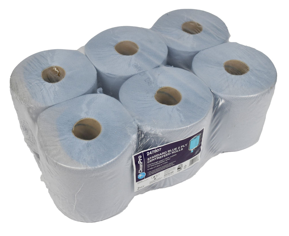 Blue 2ply Centrefeed Paper Rolls - 6 Pack