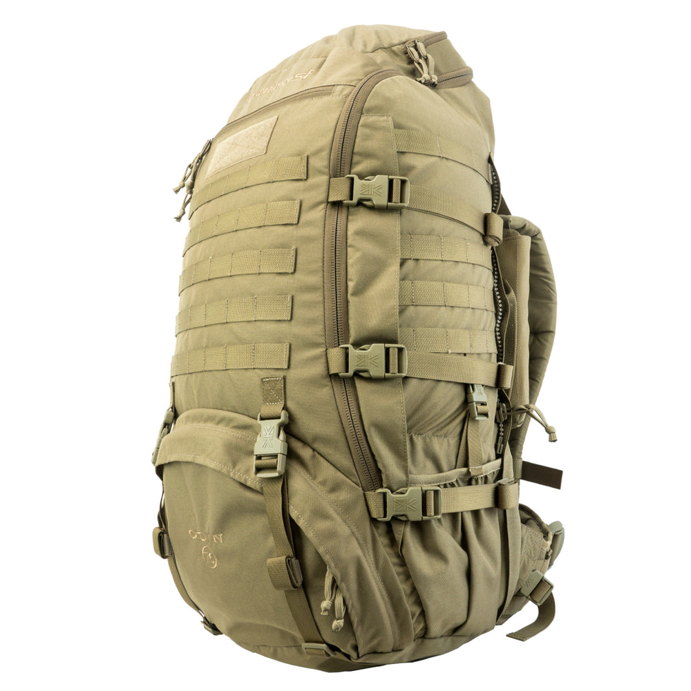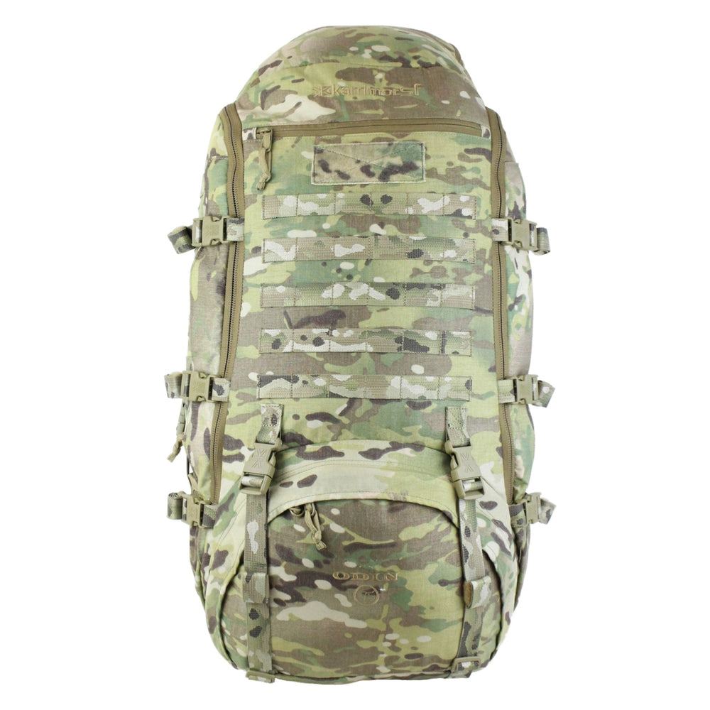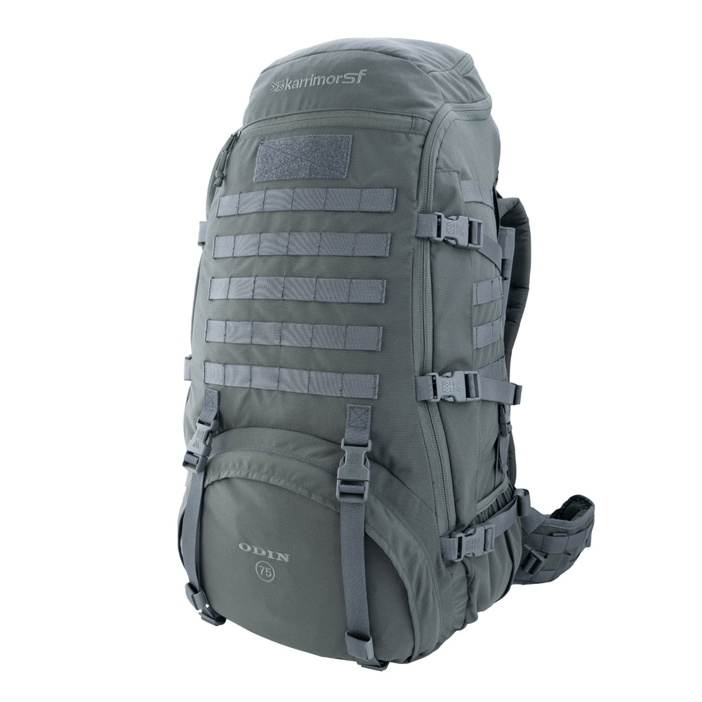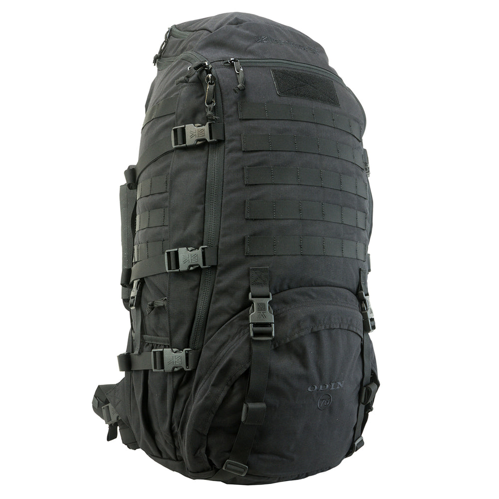 The ODIN 75 Litre mission pack offers a contemporary design featuring a spacious main compartment and additional storage options on the lid, sides, and front. With a pocket suitable for an A4 folder located at the front or back of the bag, it provides versatile storage solutions. The pack is equipped with side PLCE zips and a MOLLE system, allowing for the attachment of additional pouches. Webbing on the sides, front, and internal sections further enhances its adaptability.
