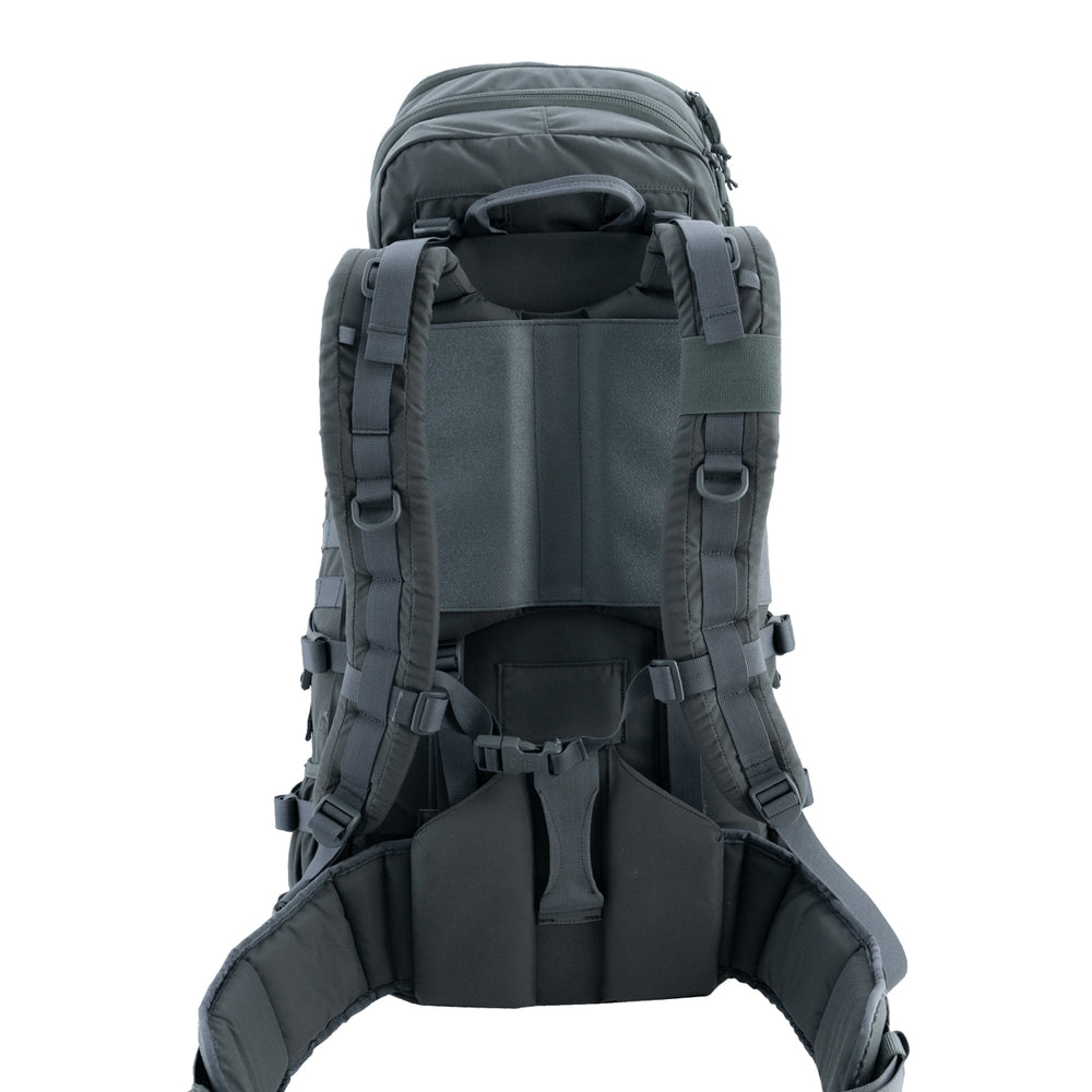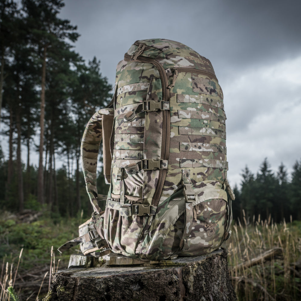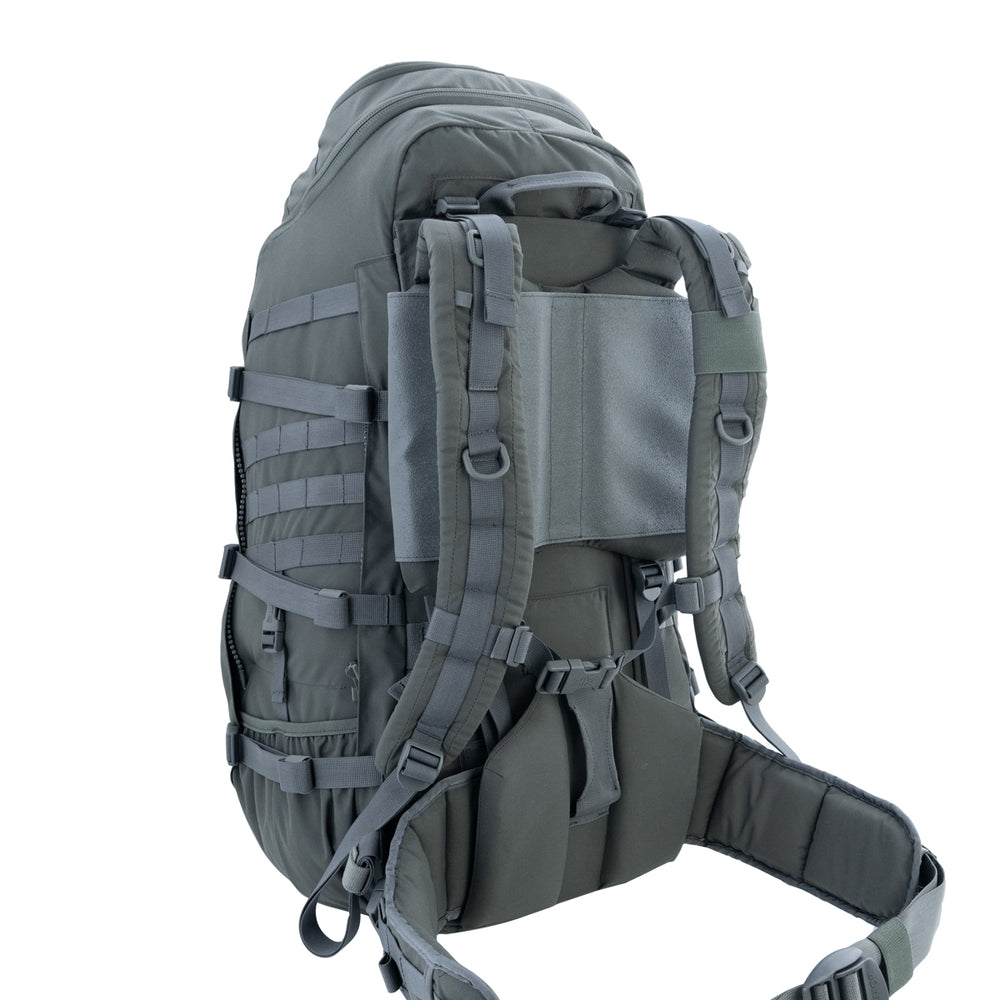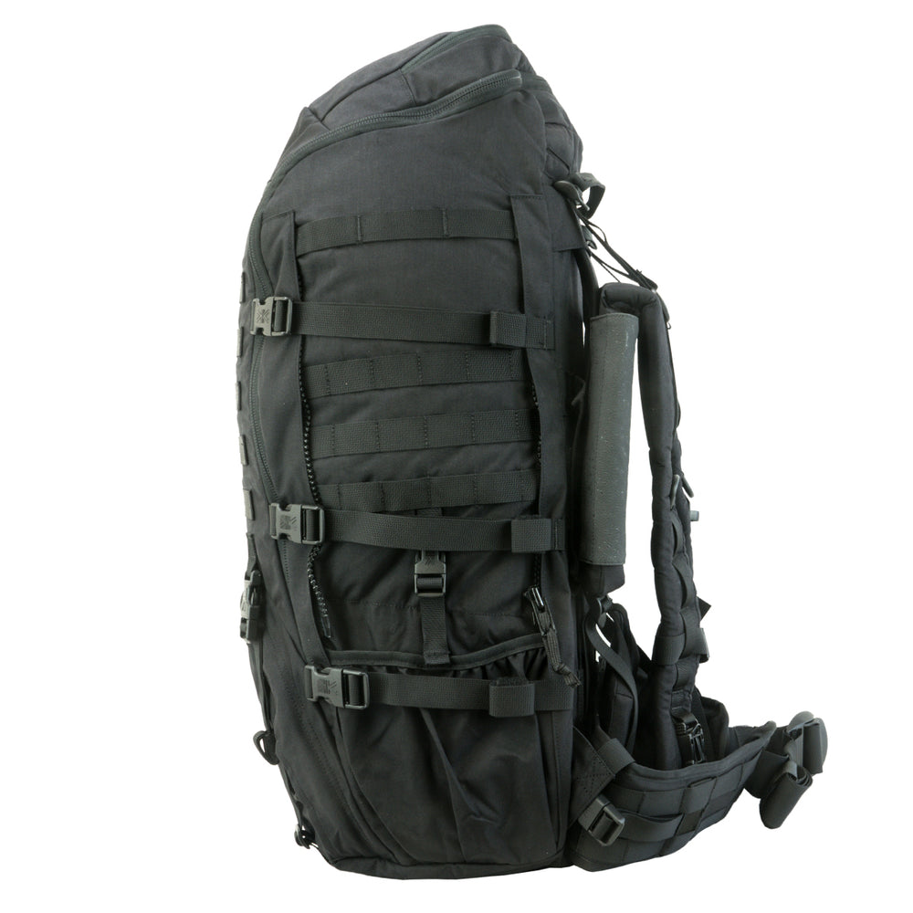 The ODIN 75 Litre mission pack offers a contemporary design featuring a spacious main compartment and additional storage options on the lid, sides, and front. With a pocket suitable for an A4 folder located at the front or back of the bag, it provides versatile storage solutions. The pack is equipped with side PLCE zips and a MOLLE system, allowing for the attachment of additional pouches. Webbing on the sides, front, and internal sections further enhances its adaptability.