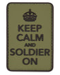 The patch measures 85mm x 50mm, making it a compact yet eye-catching addition to your collection. Show your support for soldiers and stay motivated with the inspiring "Keep Calm Soldier On" message displayed boldly on this patch.