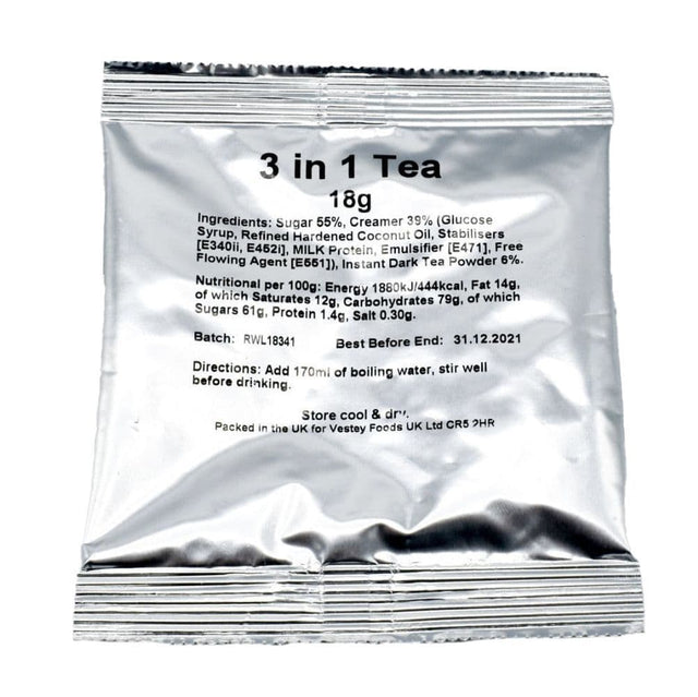 These British Army 3 in 1 Tea Sachets are perfect for a hot drink when out in the field. With sugar, milk and tea all included you simply need to pour the sachet into boiling water for a delicious drink when on the go.