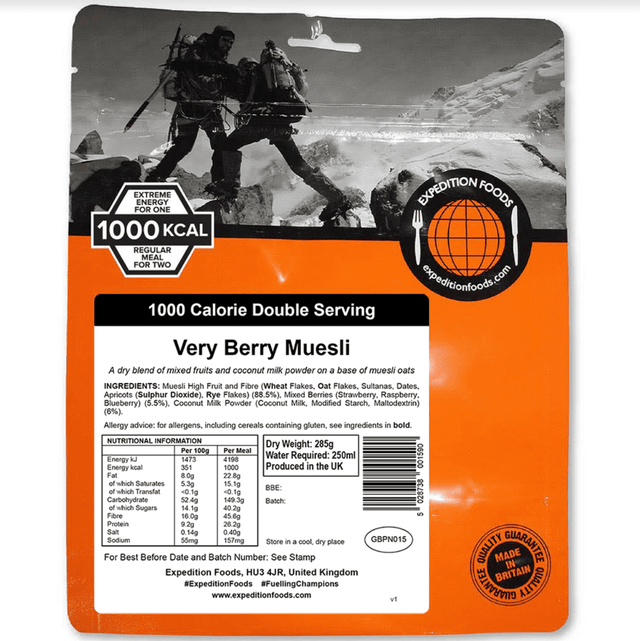 Expedition Foods Freeze Dried Meal Pouch - Breakfast Very Berry Muesli - Various Sizes