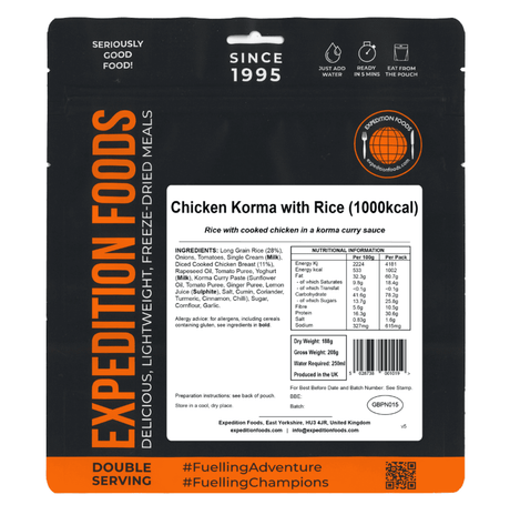 Expedition Foods Freeze Dried Meal Pouch - Chicken Korma With Rice - Various Sizes