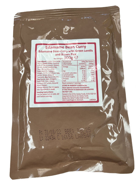 BULK BUY - British Military Ration Main Meal Pouch - Edamame Bean Curry 300g x 20