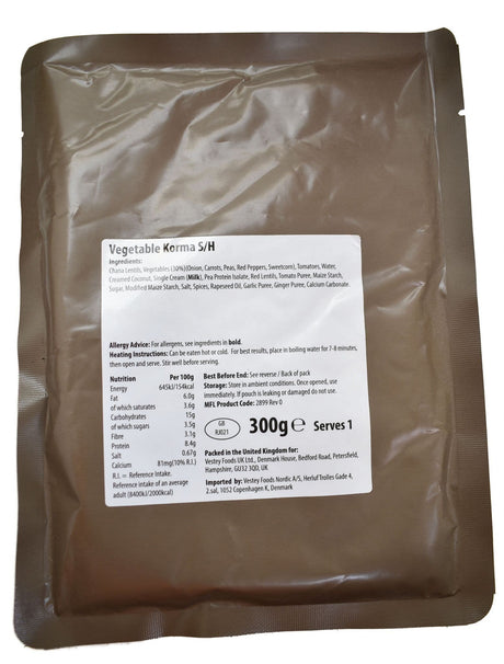 British Military Ration Main Meal Pouch - Vegetable Korma 300g
