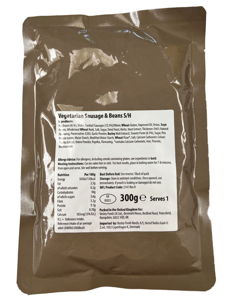 British Military Ration Main Meal Pouch - Vegetarian Sausage & Beans 300g