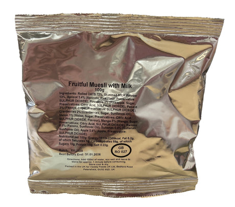 British Military Ration Meal Breakfast Pouch - Fruitful Muesli With Milk 100g