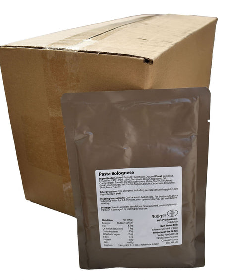 BULK BUY - British Military Ration Main Meal Pouch - Pork Pasta Bolognese 300g x 20