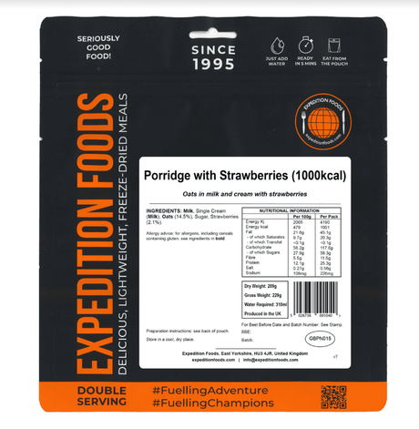 Expedition Foods Freeze Dried Meal Pouch - Breakfast Porridge With Strawberries - Various Sizes