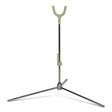 The stand features a sturdy fork designed to cradle the middle section of your bow, ensuring it stays in place. An adjustable clip along the rod allows you to perfectly secure the bow string, catering to different widths and styles of bows.