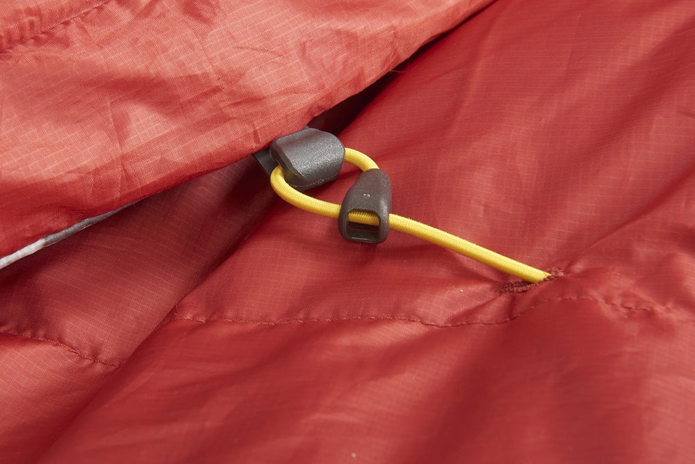 The distinctive zipperless design of The Backcountry Bed 20 Duo guarantees a lightweight and remarkably comfortable sleeping solution. The oversized integrated comforter offers the comfort of your home bed, while insulated hand/arm pockets throughout the length keep drafts away and retain warmth. Experience easy and quick ventilation with the patented self-sealing foot vent, and make use of the stretch cord closure system to block out drafts. The integrated sleeping pad sleeve secures your pad in place for added comfort and warmth, eliminating the necessity for bottom insulation.
