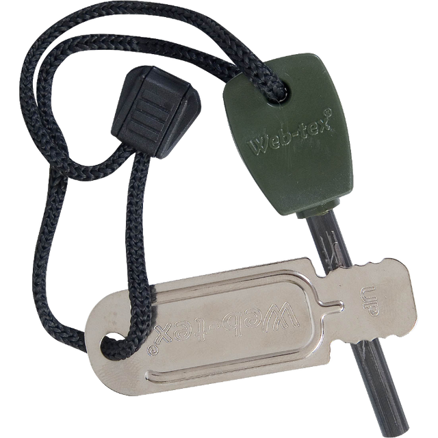 Introducing the Web-Tex Steel-of-Fire: Army fire starter, a reliable and easy-to-use tool designed to ignite fires in challenging conditions. Whether it's cold, wet, or windy, this fire starter produces hot sparks to get your fire going efficiently.